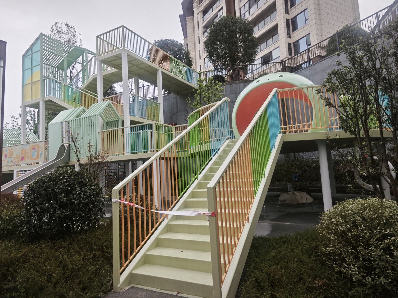 儿童乐园位于小区中心地带,拥有主题造型设施、滑梯、秋千、攀爬架等多种游乐设备,每一项设施都经过精心设计,旨在激发孩子们的好奇心和探索欲望。