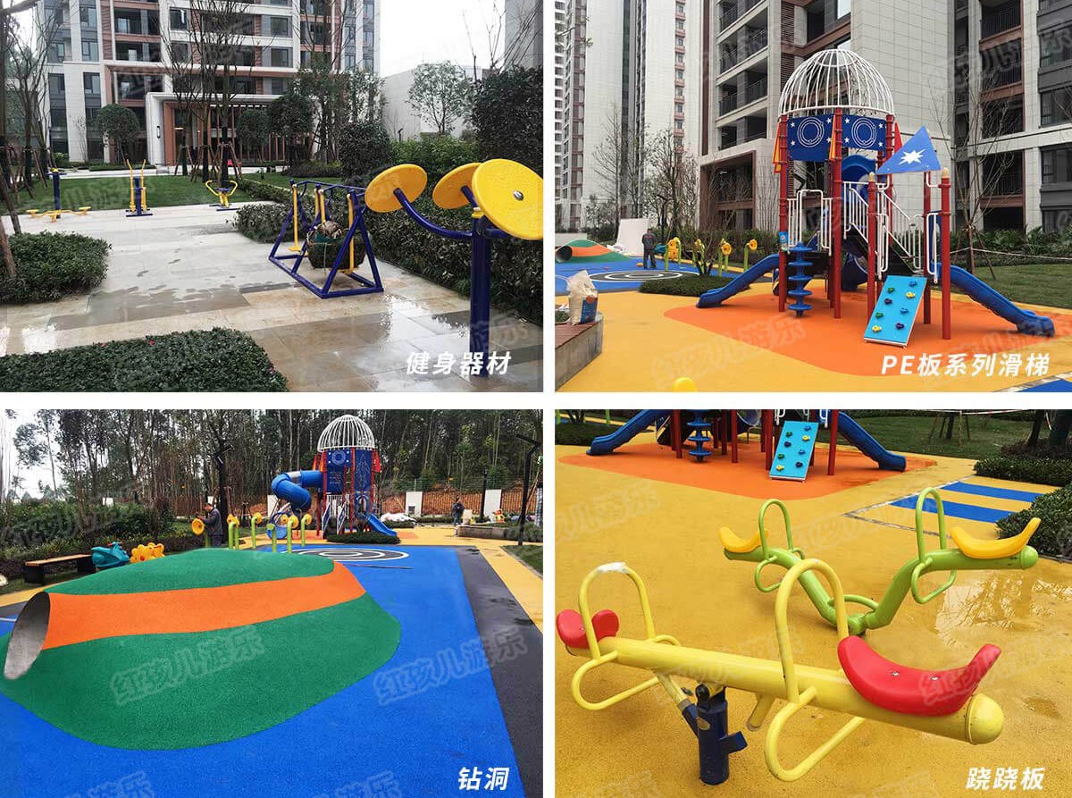 为尊重客户的经营理念,结合现有地形空间,我们将场地分为不同区域,适合不同年龄段的小朋友玩耍游乐。大型的组合滑梯,整体造型活波可爱,契合儿童的天性。可以打闹、嬉戏、追逐、攀爬等。健身区域,可增加亲子互动时间,提供成人和儿童运动,晨练,满足社区不同年龄段人员的休闲娱乐活动需求。