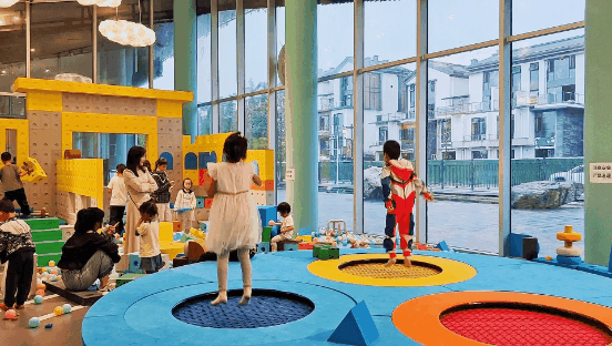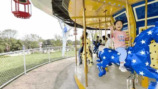 虽说孩子都有消耗不完的精力,但玩久了难免也会感觉疲惫。园区内还有其他休闲益智的项目,比如锻炼孩子逻辑思维的积木城堡、体验童年的网红大秋千,以及休闲放松的悠游飞碟和恐龙小火车。