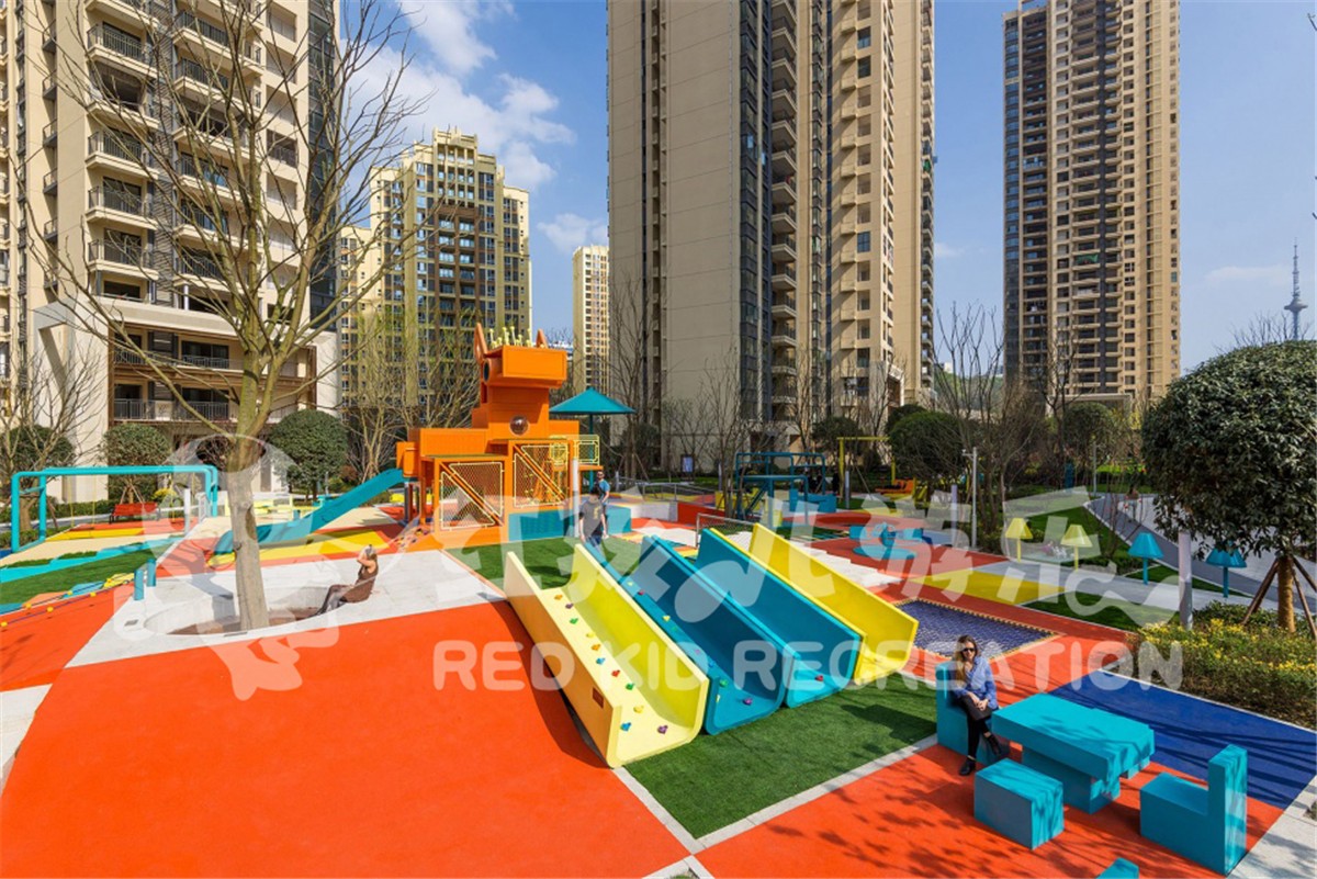 在红孩儿游乐建设的绵阳东原小区儿童乐园中,充分利用场地,打造独特的像素儿童乐园,丰富的色彩搭配却不会辣眼。