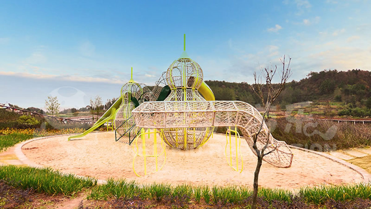 富有创意的葫芦主题,将钻网攀爬以及不锈钢滑梯融为一体,让孩子们身临其境融入到整体的故事中,激发孩子们的运动能力。