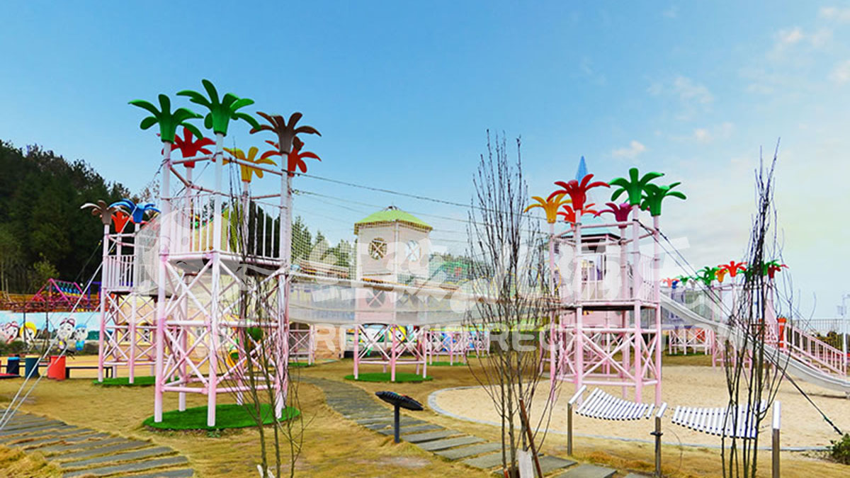 同时整体以乡村风貌为基底、童话故事为主题、儿童游乐为产品,内设有滑梯、迷宫、水上游乐等20余种游乐设施,融儿童研学旅玩于一体的童话世界。四川红孩儿游乐所采用无动力游乐设施整体以植入IP的方式,让设备“讲故事”的同时与当地的文化相融合,加上主题包装去做结合,打造成当地独一无二亮点和特色。富有新意的儿童游乐设备不仅能激发儿童的创造力、想象力、动手能力,还能开阔儿童的视野以及锻炼各种能力。